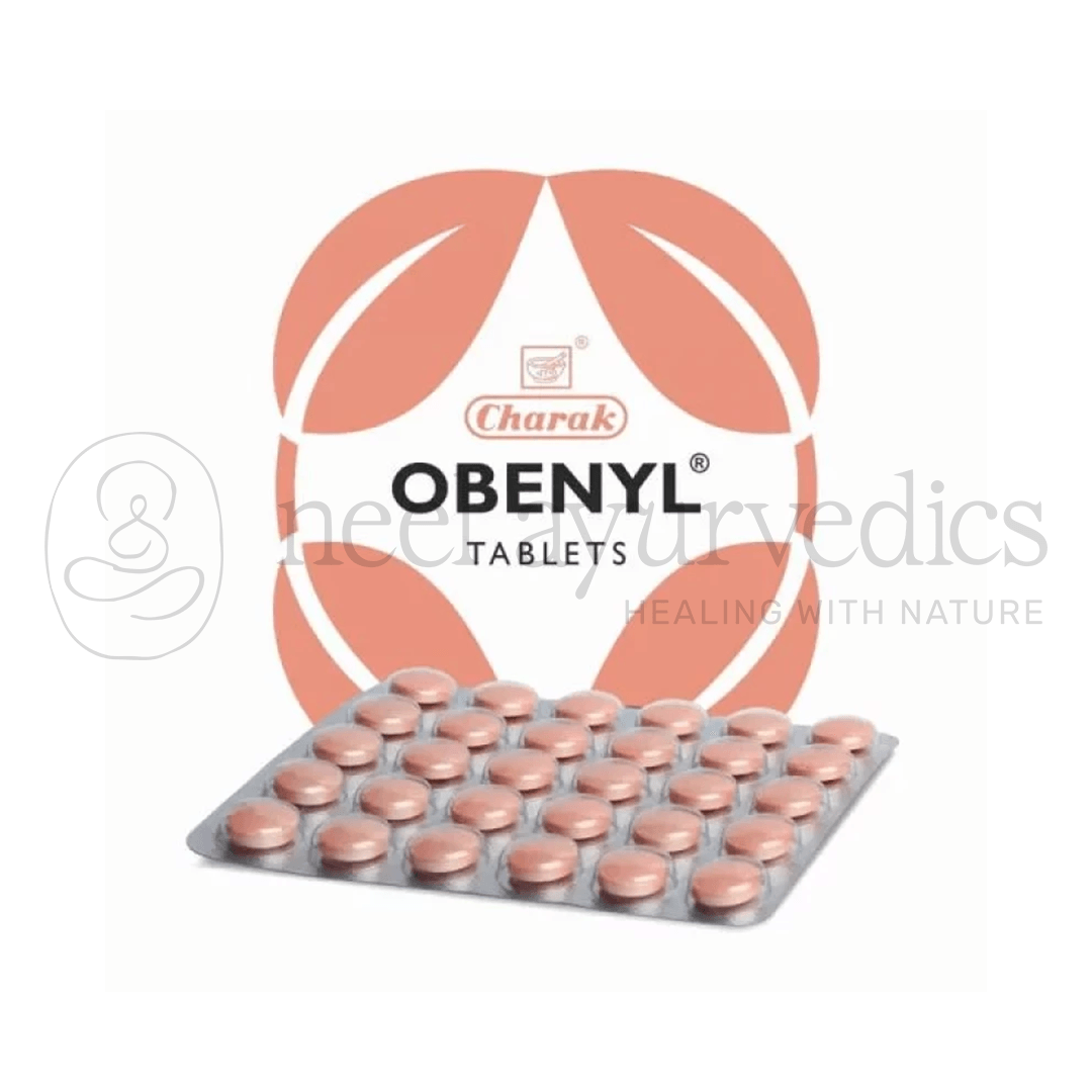 Charak Obenyl Tablet is a rational formula that is helpful in losing weight and lowering lipids. It works by suppressing the fatty acid synthesis, food intake, and lipogenesis and therefore encourages weight loss. It also consists of other ingredients such as flax seeds, Guggul, and Katuki that have fat-burning properties.