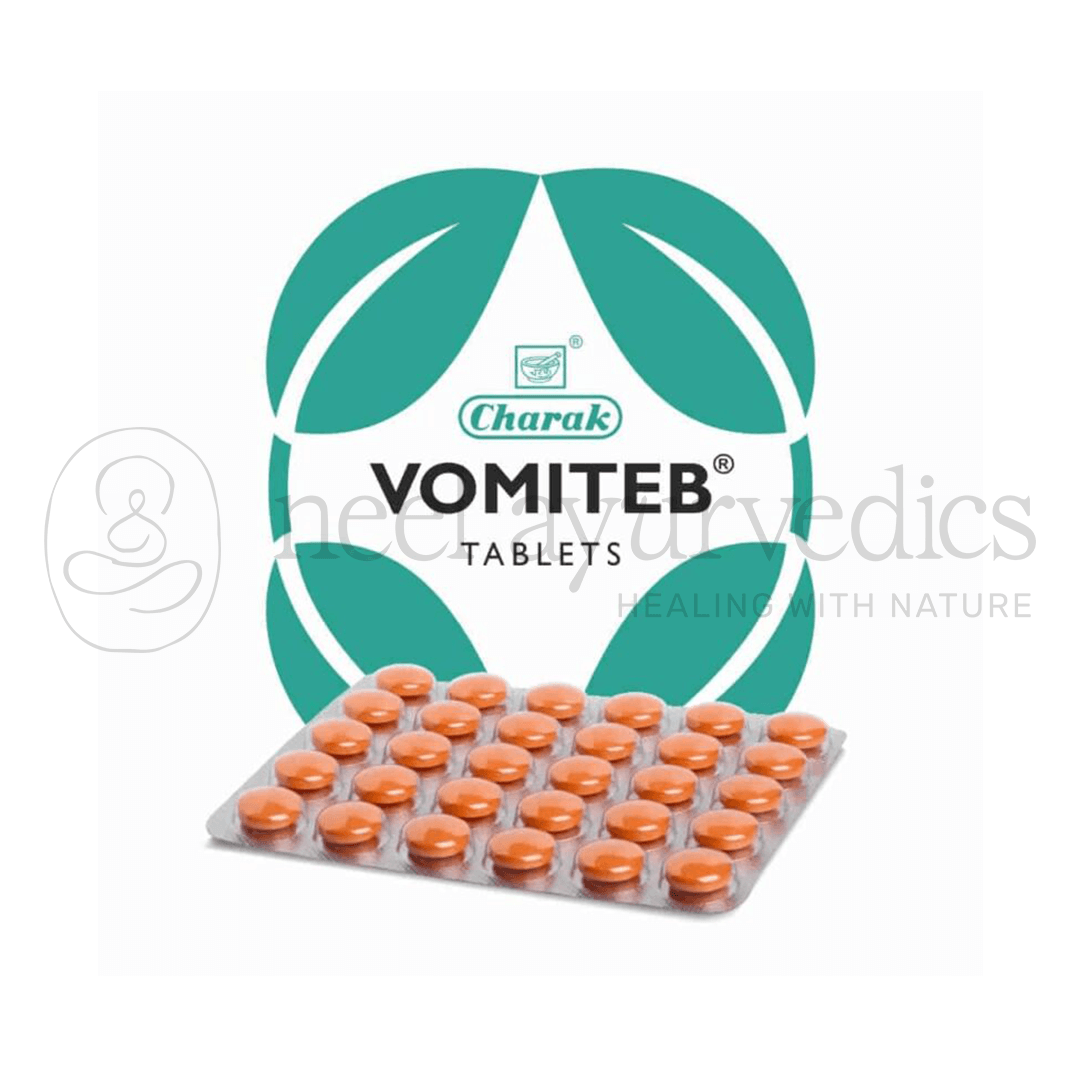 Charak Vomiteb Tablet is a herbal antinauseant and antiemetic that is both safe and effective. It inhibits the vomiting center by shielding the brain from external and chemical inputs.