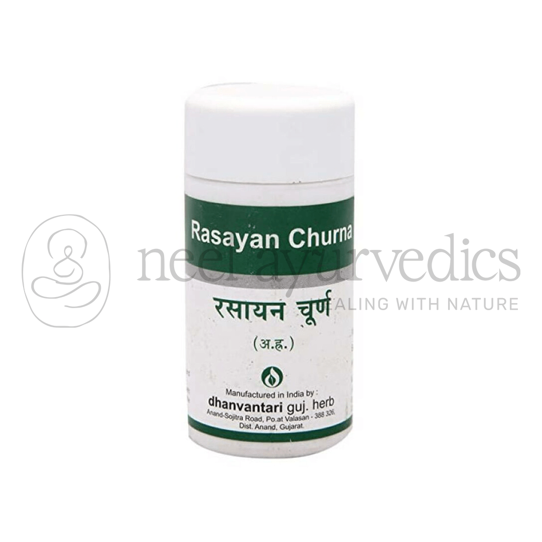 Dhanvantari Rasayan is a unique combination of three very patent herbs that fulfils the name of preparation by rejuvenation and strengthening immunity. Its diuretic property lowers risk factors of cardiac and urinary ailments. Visit other brands Rasayan Churna available on our website.