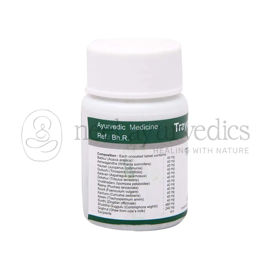 Dhanvantari Trayodashang Guggulu Tablet is indicated in the treatment of sciatica, spondylitis with inflammation of the spine (vertebrae) and arthritis, inflammation of joints, causing pain and stiffness that can worsen with age.