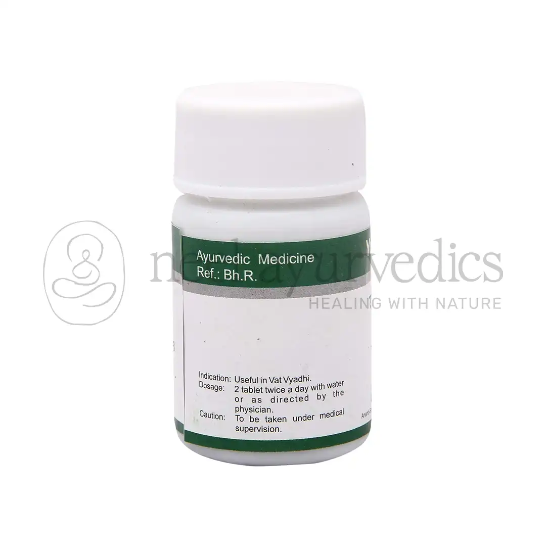 Dhanvantari Yograj Guggulu is widely used in the Ayurvedic treatment for various types of arthritis, It increases digestion power, complexion, strength and immunity. It is mainly helpful in Vata imbalance diseases affecting bone, joints and bone marrow.