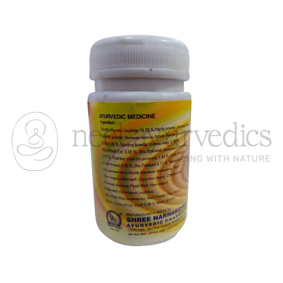 Bakuchi Churna cures skin disorders, it controls leucoderma or vitiligo. Bakuchi Churna brings to you the goodness of bakuchi seeds extracted with extreme care. Bakuchi is a very potent seed which acts as blood purifier and controls and cures damages to the skin. Bakuchi Churna is made from natural extracts and has no side effects. Don’t be troubled by skin disorders. Take Bakuchi Churna to cleanse your blood of toxins and micro-organisms and get healthy, glowing skin.