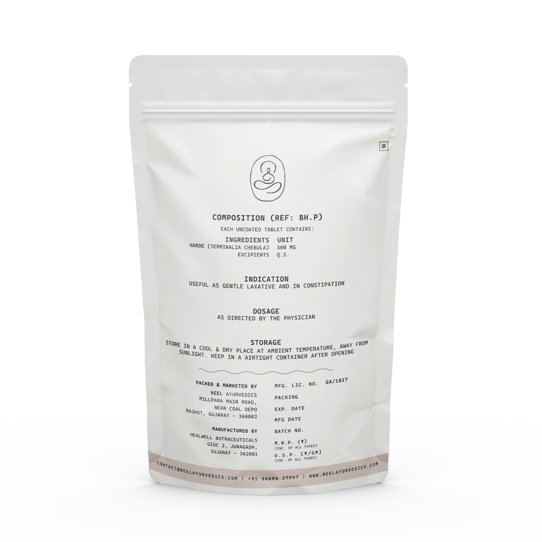 Neel Ayurvedics Harde Tablet is prepared from Hartaki Powder. Harde or Haritaki [Bot Name – Terminalia Chebula] has been revered by traditional healers since ancient times and is rightly known as the MOTHER OF HERBS! It is widely used in Ayurvedic medicine for Rejuvenation and Detoxification of various ailments. It is one of the three important fruits used in “Triphala” (Three Myrobalans), an ayurvedic generic medicine that is well known for its health benefits around the world. According to Ayurvedic texts, it has Tridosha pacifying properties and can be used as an Ayurvedic herbal tonic with multiple health benefits.