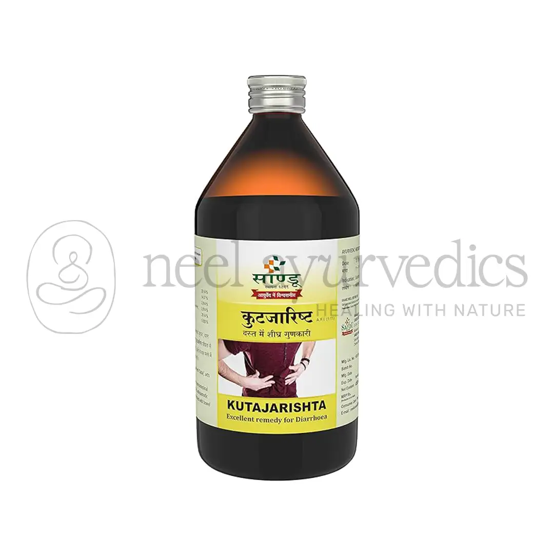 Sandu Kutajarishta has anti-diarrhoeal properties and proven activity against amoebic infection. Kutaj is the main ingredient of the formulation.  Gambhari has analgesic properties and reduces pain associated with gastrointestinal disorders.Draksha acts as a digestive tonic and keeps the body hydrated and provides strength.