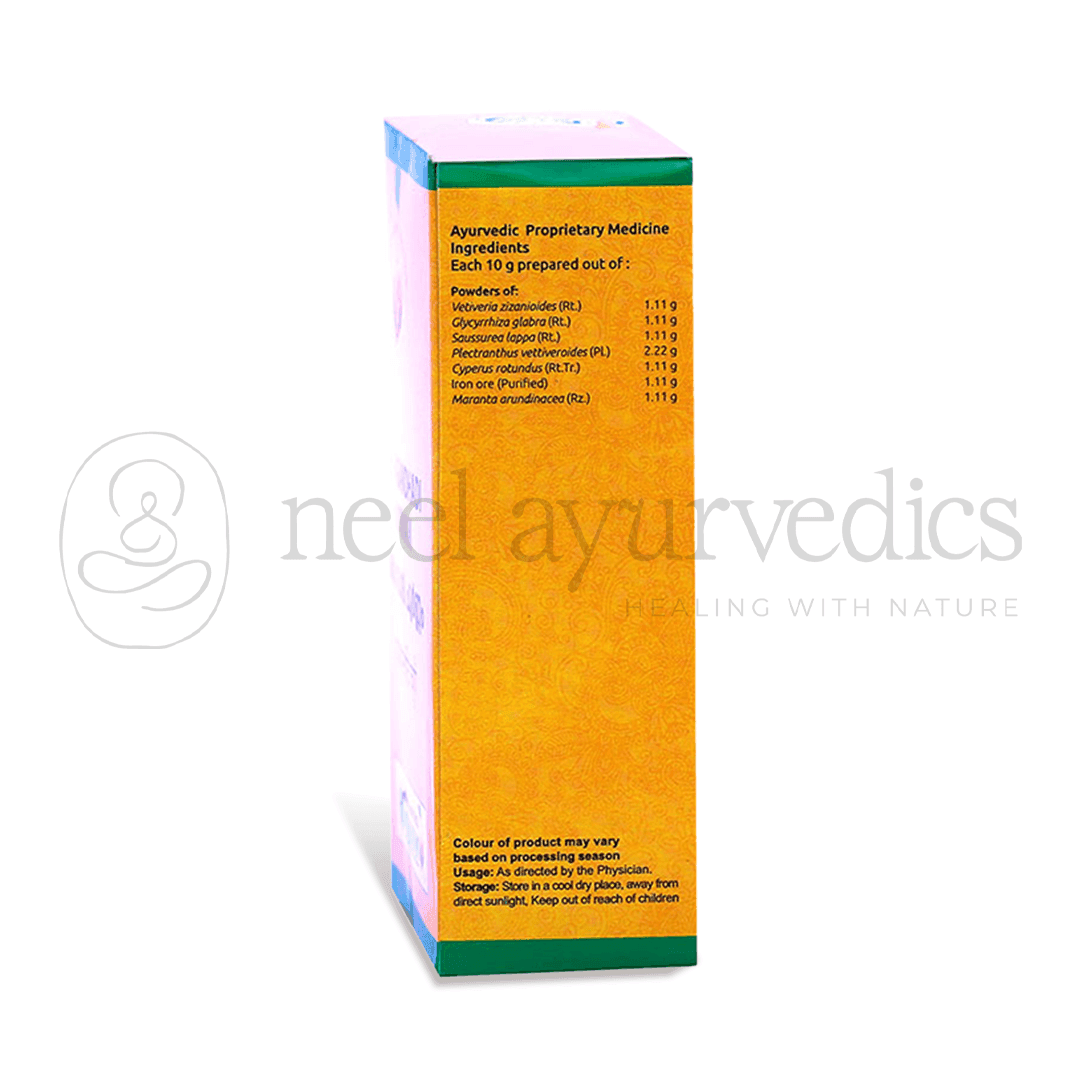 Vaidyaratnam Panchagandha Choornam is a traditional Ayurvedic formulation used to manage sleeplessness, headache, and certain mental health conditions. Made with a blend of calming and restorative herbs like Useera, Yashtimadhu, Kushta, Hribera, and Mustha, this choornam is known for its ability to soothe the mind, reduce stress, and promote restful sleep. Applied externally as a lepam (paste), it offers a safe, non-invasive, and natural solution to restore balance, tranquility, and overall well-being.