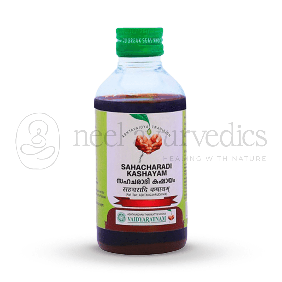 Vaidyaratnam Sahacharadi Kashayam is a classical Ayurvedic formulation renowned for its effectiveness in relieving lower body pain, sciatica, lumbago, and neuralgia. This herbal decoction acts on both the locomotor and nervous systems, helping to ease stiffness, inflammation, and pain associated with nerve compression or muscular tension.