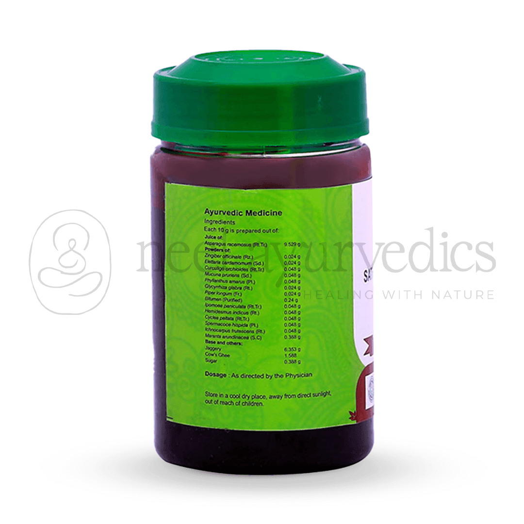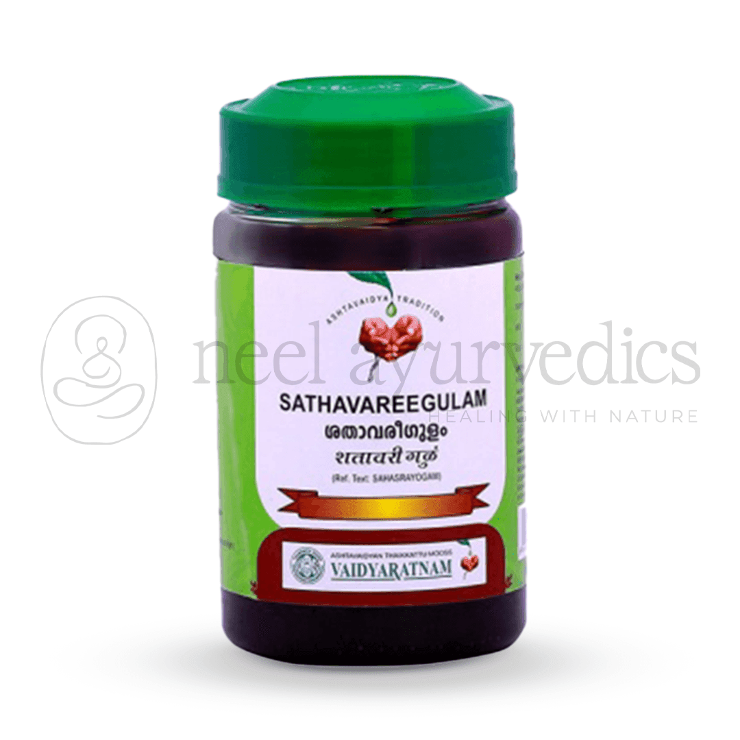 Vaidyaratnam Sathavareegulam is a powerful Ayurvedic formulation known for its restorative and soothing properties. It is especially beneficial in managing burning sensations in the legs, gynecological disorders, and jaundice. Enriched with Shatavari (Asparagus racemosus) and a synergistic blend of natural herbs, this traditional medicine promotes hormonal balance, improves circulation, and nourishes the body from within.