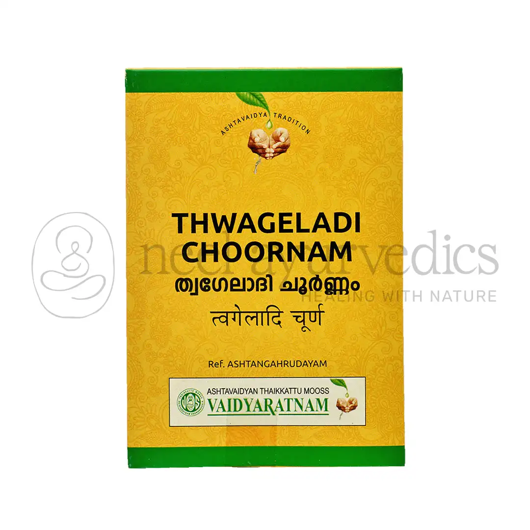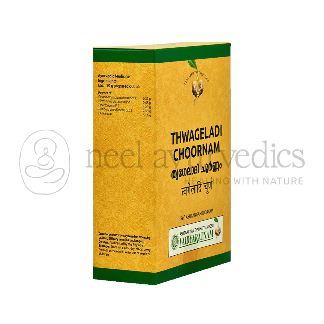 Vaidyaratnam Thwageladi Choornam is a safe and effective Ayurvedic remedy for respiratory wellness, throat care, and improved vocal clarity.