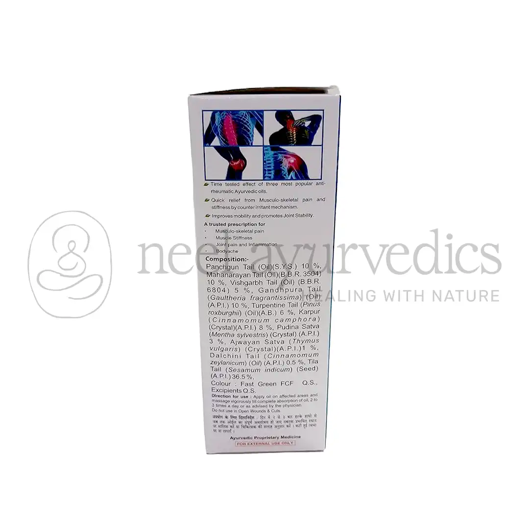Virgo Rheuma Off Oil controls joint pain, swelling, stiffness and improves mobility and joint stability.